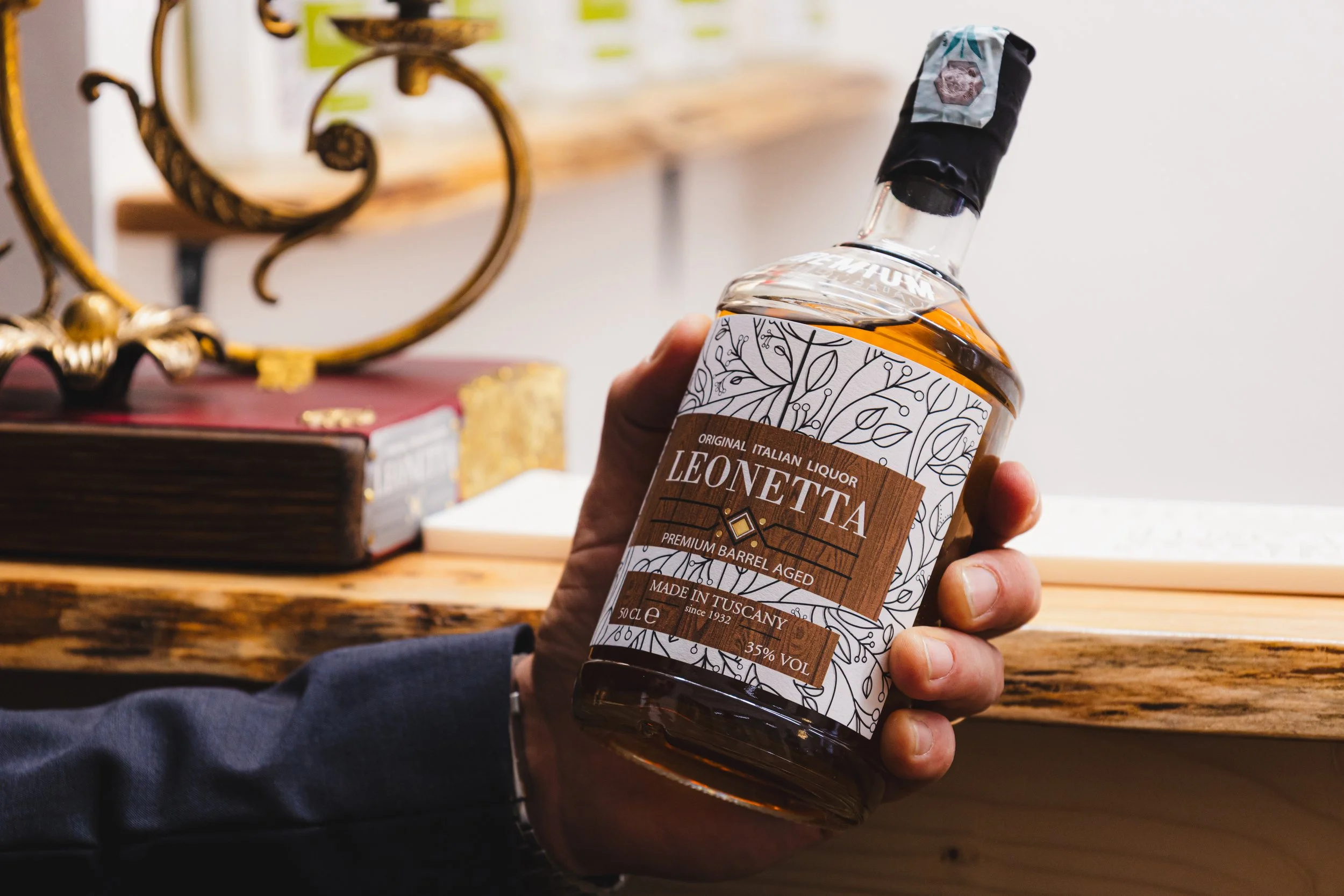 Leonetta® è un pregiato digestivo artigianale nato nel Mugello, ispirato a una ricetta segreta di famiglia tramandata dalla signora Leonetta a suo nipote, Andrea Fiesoli, che ha dato il nome al prodotto. Questo liquore, dal caratteristico colore topazio, è composto da 26 ingredienti tra erbe aromatiche e spezie, offrendo note balsamiche, agrumate e un gusto morbido